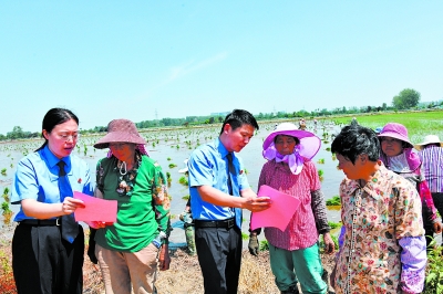 麦收结束,插秧正当时。日前,江苏省淮安市洪泽区人民检察院干警开展“法律八进”活动,走进田间地头宣传普及预防养老诈骗常识,引导农村群众系紧“粮袋子”,守好“血汗钱”。崔德圣 常兆/摄