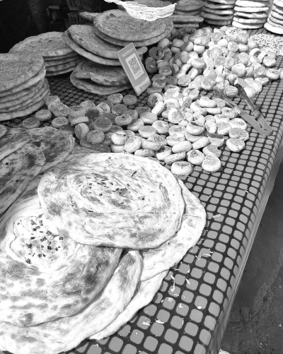 陪着莲玉阿姨继续逛街的空隙里,只要驻足,我就忍不住把手伸进塑料袋里,掰下一块馕饼来吃,热气散尽,馕饼逐渐变得绵软,口感也更加厚实。这时候更能慢慢咀嚼出粮食本身的香,等回到家里,一张饼已经从满月变成了半月。