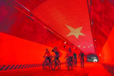 瞬间即是永恒。在河北沙河国旗隧道,我曾用手机拍到了披着国旗的骑行爱好者,在网红隧道里灯光闪耀的国旗映衬下挥手敬礼的瞬间,祖国在心中的自豪感在这一刻达到了极致。 芦延华 文/摄