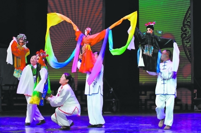7月12日晚,一场非遗展演盛会在祁连山北麓的甘肃省张掖市肃南裕固族自治县举行。来自甘肃省内各地的非遗传承人展示了裕固族婚俗、洮岷花儿、兰州鼓子、甘州小调等非遗项目。新华社记者 郎兵兵 摄