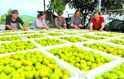 向绿而行,因绿而兴。如今,该镇初步形成了“低山带柑橘、中山带脆李、高山带茶叶”的产业布局。在福田镇松柏村,中国妇女十三大代表、该村党支部书记肖裕兰最近为村里的脆李销售忙个不停。她一边统计各家各户的产量,一边挨家帮他们对接客户。