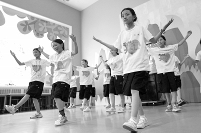 7月28日,在中国儿童中心举行的结营仪式上,孩子们表演舞蹈。    7月28日,由青海省妇联、中国建设银行青海省分行联合举办的“带上爱去北京”暑期社会实践活动结营仪式在北京中国儿童中心举行,来自青海各地的36名学生在7天的时间里参加了游览名胜古迹、参观科技展馆、与高校学子交流等一系列实践活动。这是他们第一次来到首都北京,开阔了视野,增长了见识,丰富了自己的暑假生活。新华社记者 马宁/摄