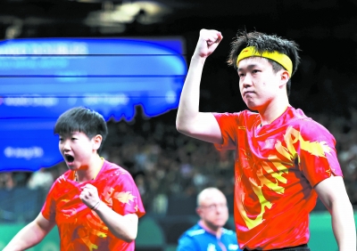 新华社巴黎7月30日电(记者 何磊静 岳冉冉 王昀加) 30日,南巴黎竞技场4号馆里一片“红色海洋”。头号种子王楚钦/孙颖莎4∶2战胜朝鲜组合李正植/金琴英,拿下乒乓球混双项目金牌,这是中国乒乓球队在巴黎奥运会上的首枚金牌,更是国乒历史上首枚混双奥运金牌。