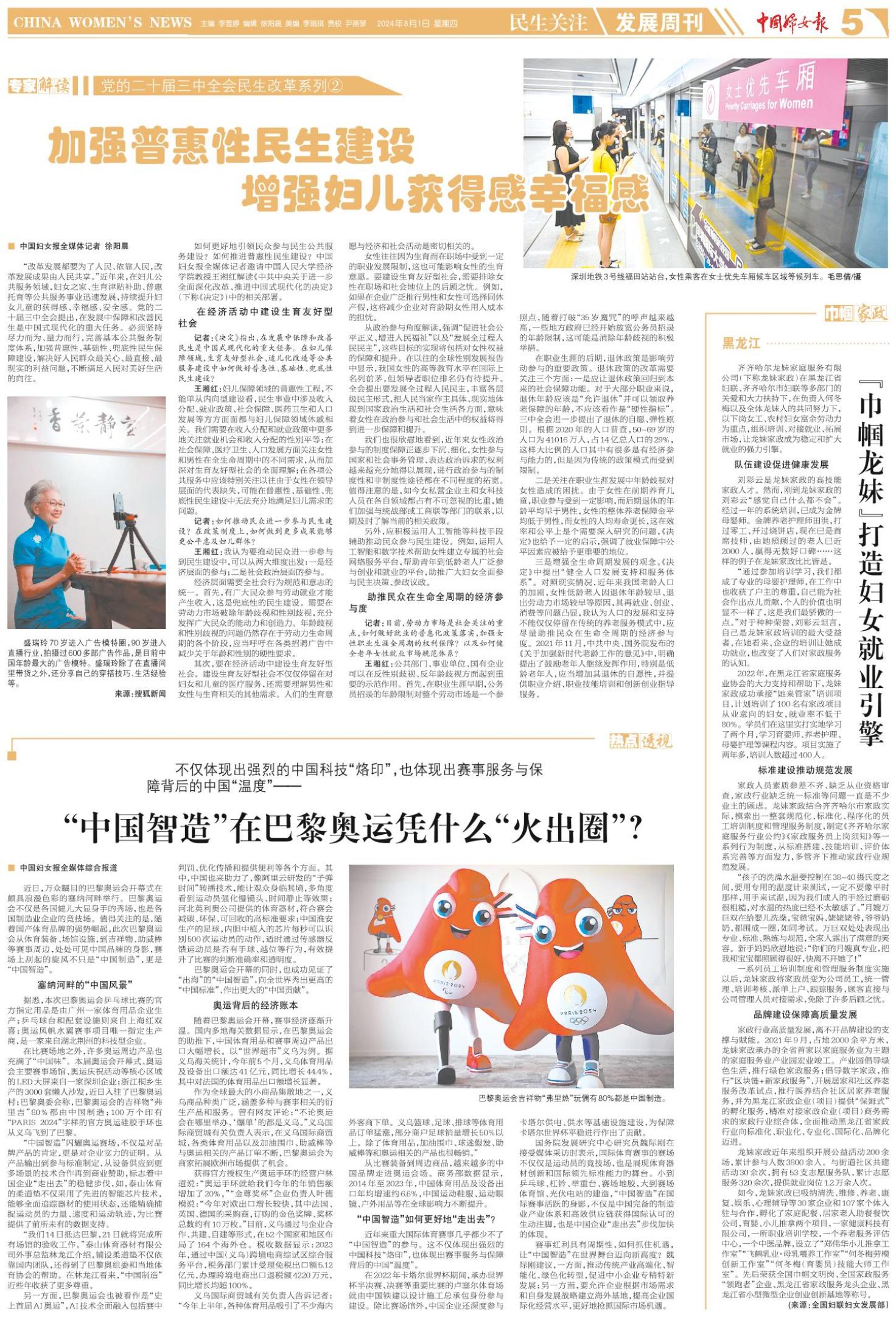 “改革发展都要为了人民、依靠人民,改革发展成果由人民共享。”近年来,在妇儿公共服务领域,妇女之家、生育津贴补助、普惠托育等公共服务事业迅速发展,持续提升妇女儿童的获得感、幸福感、安全感。党的二十届三中全会提出,在发展中保障和改善民生是中国式现代化的重大任务。必须坚持尽力而为、量力而行,完善基本公共服务制度体系,加强普惠性、基础性、兜底性民生保障建设,解决好人民群众最关心、最直接、最现实的利益问题,不断满足人民对美好生活的向往。