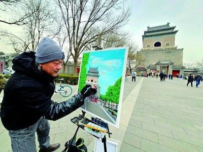 ◀ 2024年1月,画家在描绘心中美丽的钟楼。