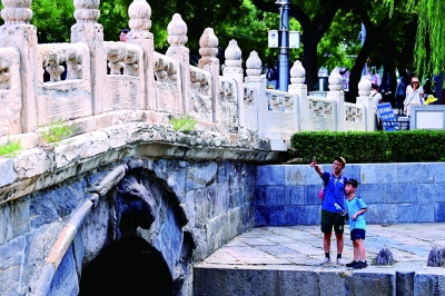 ▶ 2024年7月,一名父亲在北京万宁桥边,为孩子讲述它的历史。