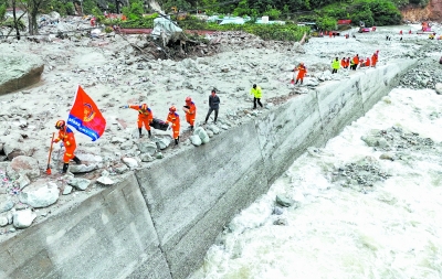 记者跟随一支消防队伍蹚水突进日地村深处,看到许多房屋已被堆积物掩埋或被巨石冲毁。队员们手持专业设备,深一脚浅一脚地进入掩埋区域搜寻。“时间不等人,趁着没下雨,今天天一亮我们就进场了。”一名消防战士说,要抓紧白天和好天气的“窗口期”加紧搜寻。