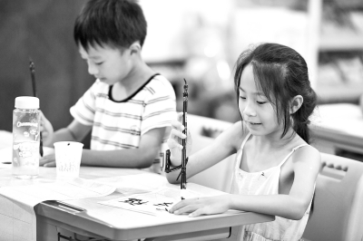 8月7日,在长沙市望城区月亮岛街道黄都港社区,小朋友在书法课上练习写字。暑假期间,为缓解双职工家庭、新就业形态劳动者等群体子女的托管难题,湖南省长沙市望城区月亮岛街道黄都港社区开设了“爱心课堂”,为孩子们提供朗诵、体育、书法等课程,组织读书分享会、暑期科普实践等活动,丰富孩子们的假期生活,缓解家长暑期“带娃难”。新华社记者 陈泽国/摄
