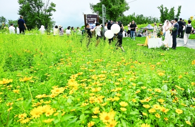 在吉林松花湖滑雪场内,一对新人婚礼利用山间滑雪道旁的场地举办(8月3日摄)。 吉林省吉林市拥有松花湖、北大湖等多个优质滑雪场,冬季旅游资源丰富。近年来,为了进一步激发旅游资源,当地积极培育滑雪场的夏季旅游市场,通过丰富多元的活动策划、创意十足的景观改造以及特色鲜明的休闲项目引入等措施吸引客流,让冬季里单一色彩的滑雪场变身夏日里彩色的旅游打卡地,为游客提供消暑度假好去处。 新华社记者 李贺/摄