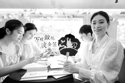 当日,中国铁路上海局集团有限公司南京客运段在G7393次和G132次高铁列车上开展“七夕宁相汇 文博叙匠心”主题活动。活动中,来自南京多家文博场馆的工作人员进行传统手工艺展示,并邀请旅客互动体验,让旅客在旅途中感受传统文化的魅力,迎接七夕节的到来。新华社发(苏阳/摄)
