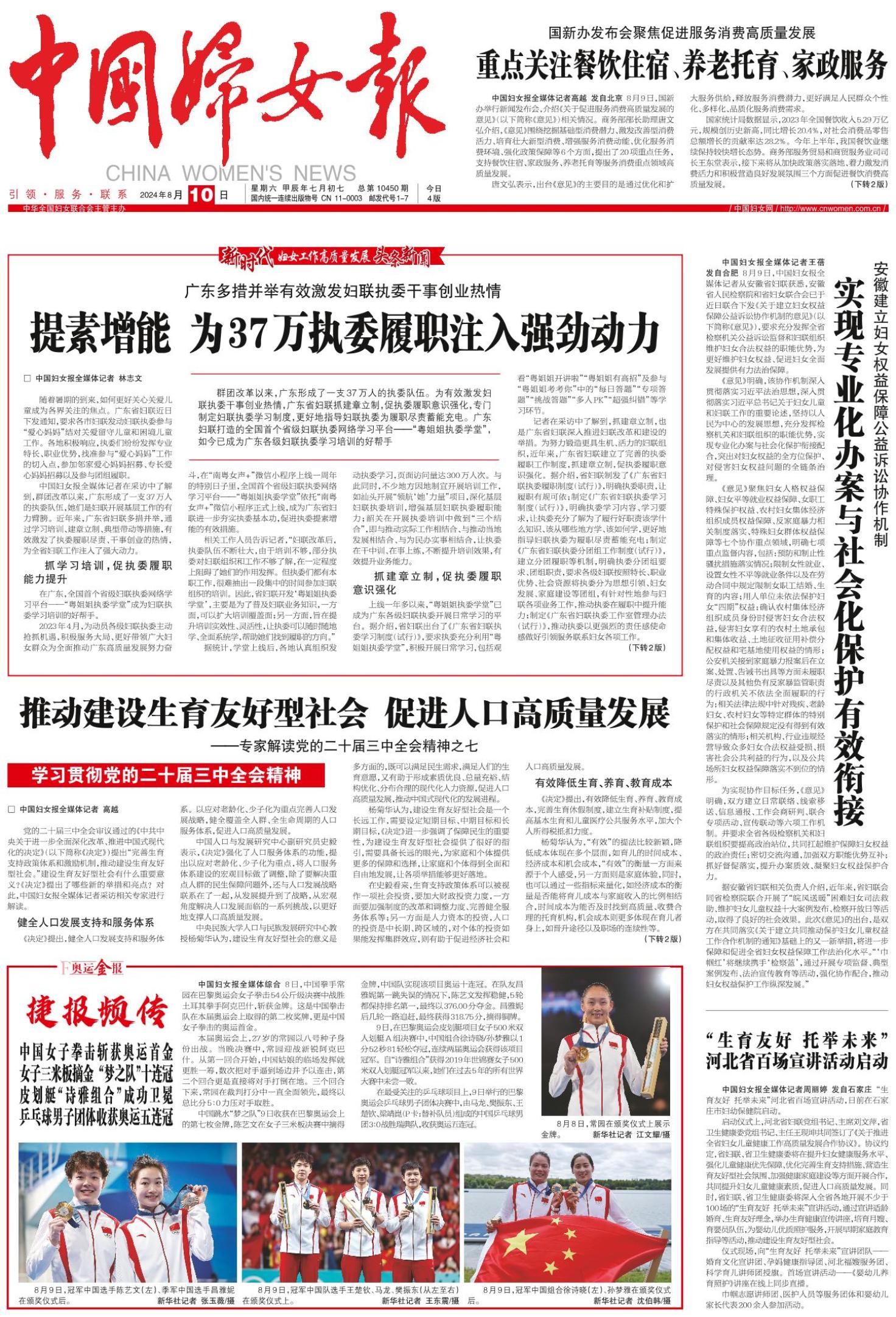 《中国妇女报》(电子版)的一切内容(包括但不限于文字、图片、PDF、图表、标志、标识、商标、版面设计、专栏目录与名称、内容分类标准以及为读者提供的任何信息)仅供中国妇女报读者阅读、学习研究使用,未经中国妇女报及/或相关权利人书面授权,任何单位及个人不得将《中国妇女报》(电子版)所登载、发布的内容用于商业性目的,包括但不限于转载、复制、发行、制作光盘、数据库、触摸展示等行为方式,或将之在非本站所属的服务器上作镜像。否则,中国妇女报将采取包括但不限于网上公示、向有关部门举报、诉讼等一切合法手段,追究侵权者的法律责任。