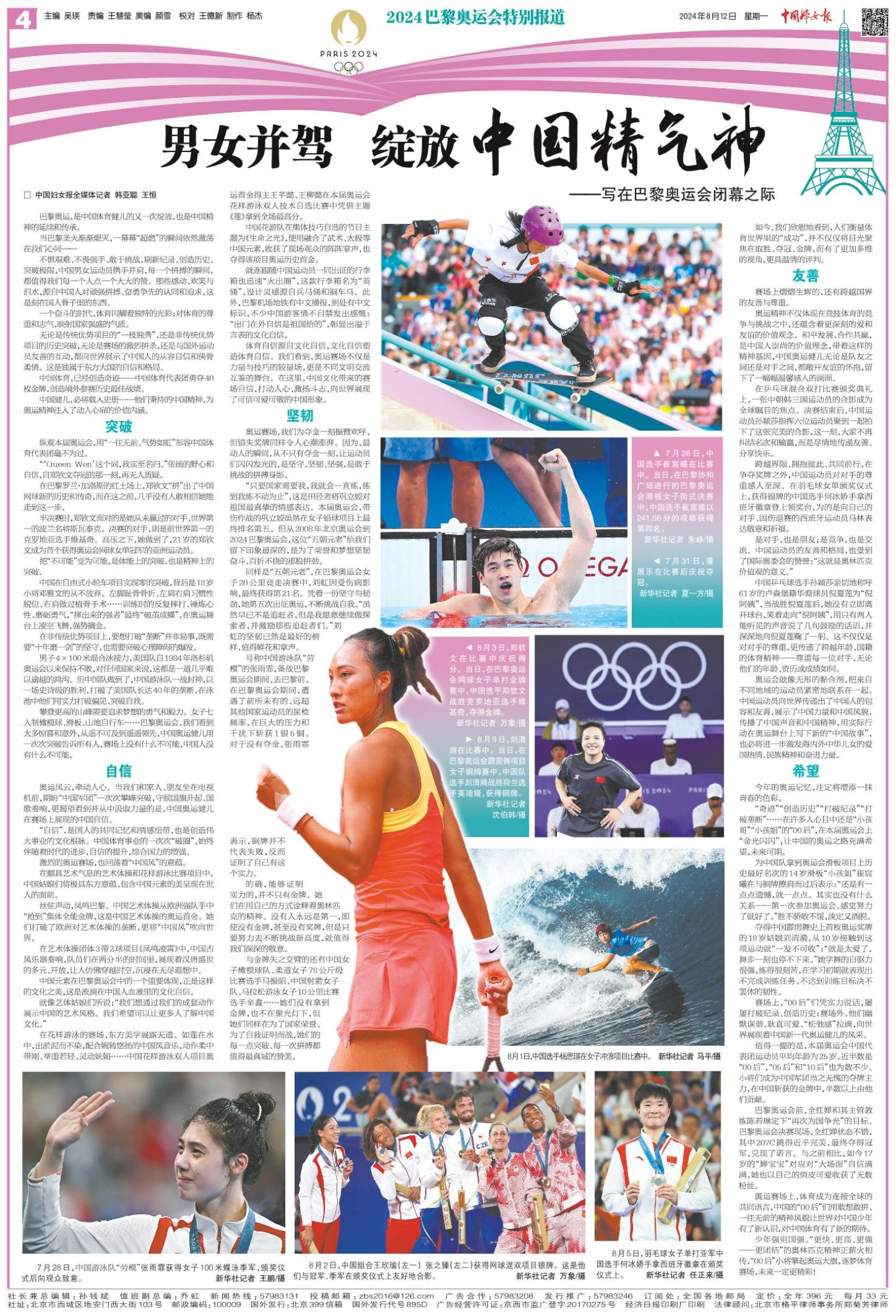 巴黎奥运,是中国体育健儿的又一次绽放,也是中国精神的延续和传承。