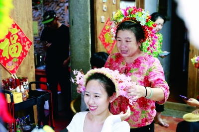 蟳埔村位于福建省泉州湾晋江入海口,蟳埔女簪发戴花的古老民俗被称为“簪花围”。2008年,以“簪花围”为代表的蟳埔女习俗被列入第二批国家级非遗名录。自去年起,原本安静的小渔村随着网络上“簪花围”的出圈而热闹起来,带火了当地文旅产业。