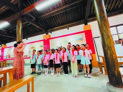 “上午,田地里认识农作物,必须说出五种以上;中午,烤土豆串成“糖葫芦”,煮花生是塘溪三宝;下午,周尧故居制作标本,参观讨论认识蝴蝶。”“努力完成科学小作品,永动笔就是磁铁原理;认识一下各国货币,畅游世界购物一遭。”……名人故居、博物馆是课堂,田间地头也是课堂;课本知识、手工实践是学习,防诈、防溺水、防欺凌也是学习……每日一新的课程,让孩子们对每天都充满了期待。