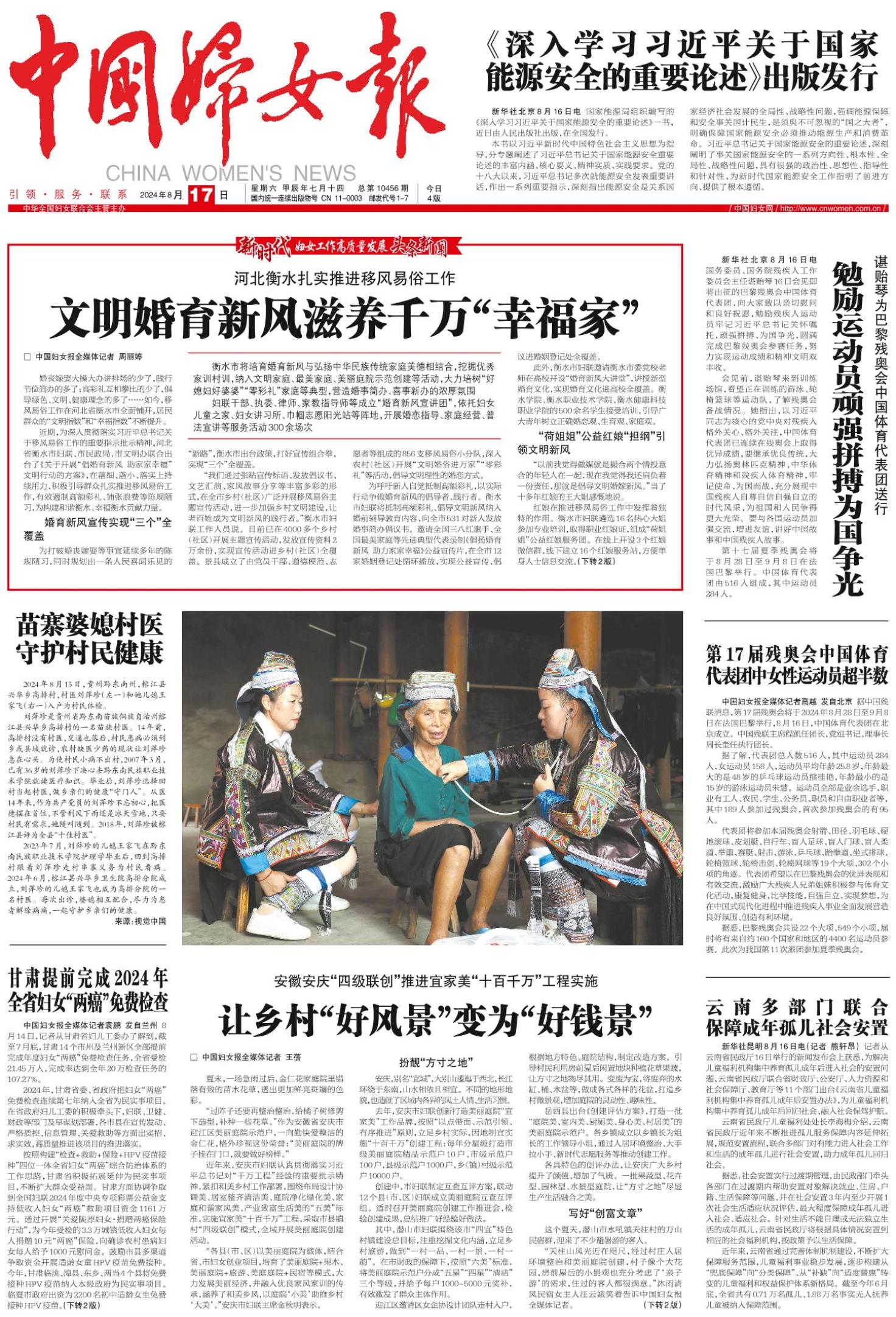 《中国妇女报》(电子版)的一切内容(包括但不限于文字、图片、PDF、图表、标志、标识、商标、版面设计、专栏目录与名称、内容分类标准以及为读者提供的任何信息)仅供中国妇女报读者阅读、学习研究使用,未经中国妇女报及/或相关权利人书面授权,任何单位及个人不得将《中国妇女报》(电子版)所登载、发布的内容用于商业性目的,包括但不限于转载、复制、发行、制作光盘、数据库、触摸展示等行为方式,或将之在非本站所属的服务器上作镜像。否则,中国妇女报将采取包括但不限于网上公示、向有关部门举报、诉讼等一切合法手段,追究侵权者的法律责任。