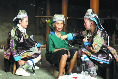 2023年7月,刘萍珍的儿媳王家飞在黔东南民族职业技术学院护理学毕业后,回到高排村跟着刘萍珍走村串寨义务为村民看病。2024年6月,榕江昙兴华乡卫生院高排分院成立,刘萍珍的儿媳王家飞也成为高排分院的一名村医。每次出诊,婆媳相互配合,尽力为患者解除病痛,一起守护乡亲们的健康。