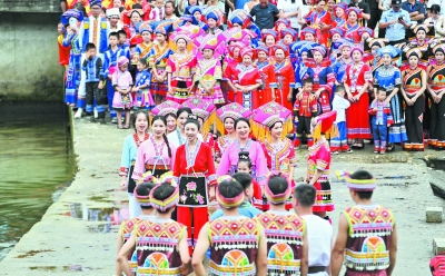 8月18日,在柳州市融水苗族自治县汪洞乡,村民们在改造后的河道上对唱山歌。    近年来,广西壮族自治区柳州市融水苗族自治县汪洞乡在结对帮扶的广东省廉江市相关部门的支持下,充分利用水资源丰富的优势,举办水上竞技比赛、山歌对唱活动、非遗文化进校园等,擦亮“水文化”品牌,推进民族文化旅游产业发展,助力乡村振兴。    新华社记者 黄孝邦/摄