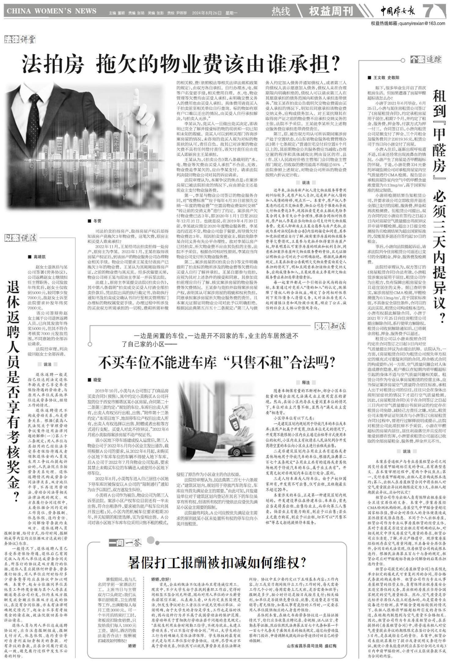 《中国妇女报》(电子版)的一切内容(包括但不限于文字、图片、PDF、图表、标志、标识、商标、版面设计、专栏目录与名称、内容分类标准以及为读者提供的任何信息)仅供中国妇女报读者阅读、学习研究使用,未经中国妇女报及/或相关权利人书面授权,任何单位及个人不得将《中国妇女报》(电子版)所登载、发布的内容用于商业性目的,包括但不限于转载、复制、发行、制作光盘、数据库、触摸展示等行为方式,或将之在非本站所属的服务器上作镜像。否则,中国妇女报将采取包括但不限于网上公示、向有关部门举报、诉讼等一切合法手段,追究侵权者的法律责任。