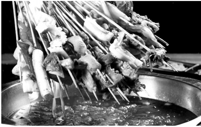 无论是火锅还是串串,鲜香麻辣,红油和花椒的香气把整座城浸润了。酸豆角炒饭两勺,脑花一块,淋汤汁些许,一口闷下,再搭配三五根豆芽,酸香咸辣脆,鲜味像厝顶的雨嗫嚅着。
