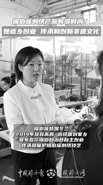 锡伯族姑娘冬兰放弃国外高薪工作,选择回到家乡新疆察布查尔锡伯自治县创业,传承和保护锡伯族刺绣技艺。她和团队开发了多款融合现代时尚元素与锡伯族传统文化的产品,包括服装、手帕、抱枕等。还免费为各族妇女开展刺绣技能培训,帮助她们掌握刺绣技艺,通过刺绣实现增收。作为锡伯刺绣非物质文化遗产传承人,冬兰说:“刺绣不仅是技艺,更是一种文化传承。每一针一线,都是对祖先智慧的敬畏和对生活的热爱。”