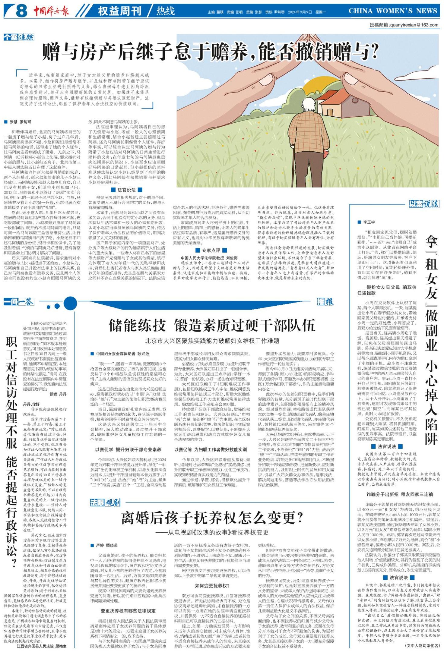 《中国妇女报》(电子版)的一切内容(包括但不限于文字、图片、PDF、图表、标志、标识、商标、版面设计、专栏目录与名称、内容分类标准以及为读者提供的任何信息)仅供中国妇女报读者阅读、学习研究使用,未经中国妇女报及/或相关权利人书面授权,任何单位及个人不得将《中国妇女报》(电子版)所登载、发布的内容用于商业性目的,包括但不限于转载、复制、发行、制作光盘、数据库、触摸展示等行为方式,或将之在非本站所属的服务器上作镜像。否则,中国妇女报将采取包括但不限于网上公示、向有关部门举报、诉讼等一切合法手段,追究侵权者的法律责任。