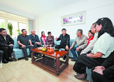 在退休老党员李宗彪家,习近平同一家人围坐在一起拉家常。看到一家三代生活幸福、其乐融融,他很欣慰。习近平表示,民生为大、民生为要,党中央十分关心老年人的幸福安康,各地各有关部门在养老、医疗和社区服务等方面下了很大功夫,要坚持做下去,越做越好。