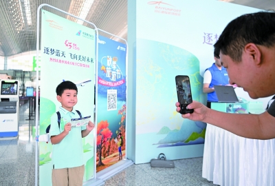 9月19日,乘坐南航C919首航航班的旅客在广州白云国际机场航站楼拍照留念。 当日12时许,机头显著位置标记着“C919”字样的中国南方航空公司CZ3539航班从广州白云国际机场腾空而起,满载乘客飞向上海。 至此,中国三大航空公司已全部开启了国产大飞机的商业运营。 新华社记者 邓华/摄