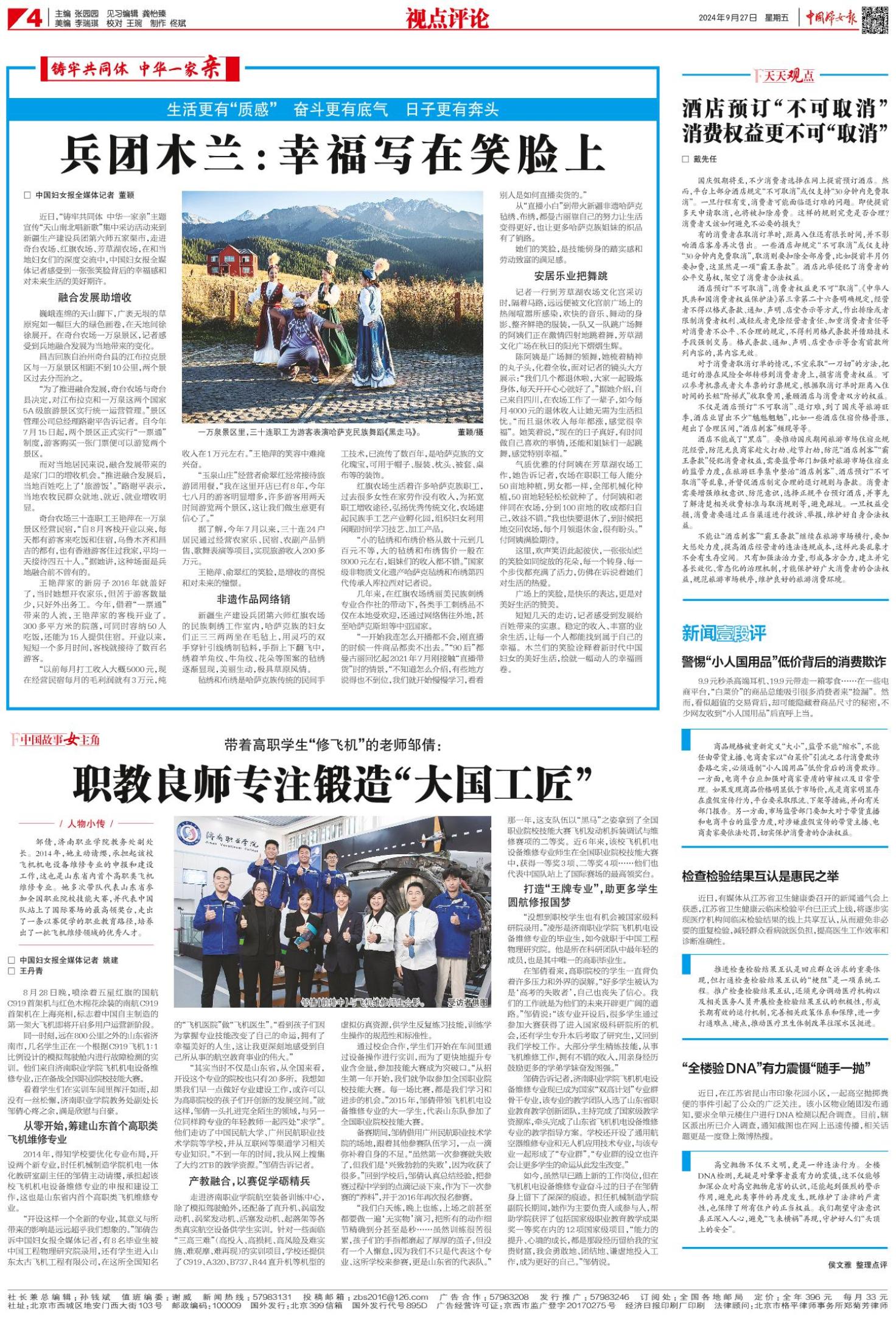 《中国妇女报》(电子版)的一切内容(包括但不限于文字、图片、PDF、图表、标志、标识、商标、版面设计、专栏目录与名称、内容分类标准以及为读者提供的任何信息)仅供中国妇女报读者阅读、学习研究使用,未经中国妇女报及/或相关权利人书面授权,任何单位及个人不得将《中国妇女报》(电子版)所登载、发布的内容用于商业性目的,包括但不限于转载、复制、发行、制作光盘、数据库、触摸展示等行为方式,或将之在非本站所属的服务器上作镜像。否则,中国妇女报将采取包括但不限于网上公示、向有关部门举报、诉讼等一切合法手段,追究侵权者的法律责任。