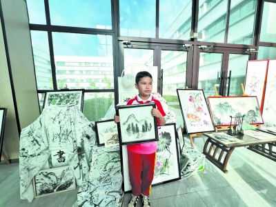 该校五年级学生热亚提·阿迪力所在的班级中,有维吾尔族、蒙古族、汉族、土家族、阿昌族学生。课余时间,热亚提·阿迪力选修了国画、戏曲等课程。暑假的时候,他和同学在老师的带领下,前往对口帮扶校之一——浙江省金华市湖海塘小学研学,结交了不少好朋友,还以浙江的山水为题材,创作了一幅水墨画。