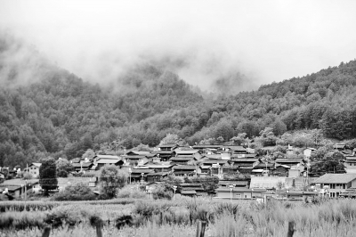 车子行驶在只容一辆车通过的红砂石村道上,我们都被窗外的美景勾去了魂儿。深深浅浅的绿呀,绿得将我的心化成了一汪春水;浓浓淡淡的雨雾呀,如丝带如柳絮如纱笼铆足劲儿跑到绿毯一样大大小小的以丛林为界的草甸,再向近处绿油油的玉米地、黄灿灿的向日葵地、地边的木篱笆、罗古菁古村落一路弥散开去……还在沉醉中,我们所住的金兰民宿到了,大概二十几分钟的车程。
