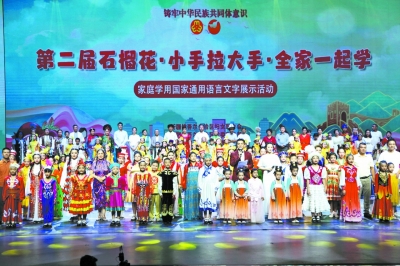 2024年8月18日,新疆妇联联合党委宣传部、教育厅共同举办“铸牢中华民族共同体意识”——第二届“石榴花·小手拉大手·全家一起学”家庭学用国家通用语言文字展示活动,这是新疆妇联以示范带动全区推进国家通用语言文字普及推广的又一次有益尝试。在展示活动的舞台上,有来自14个地(州、市),包括汉族、维吾尔族、哈萨克族、回族、蒙古族、柯尔克孜族、塔吉克族、乌孜别克族8个民族的34户家庭92名群众。他们通过歌舞表演、情景剧等10个节目,充分展现了各族家庭学用国家通用语言文字的成效,真挚淳朴地表达着对中国共产党、对伟大祖国、对大美新疆的热爱和赞美。