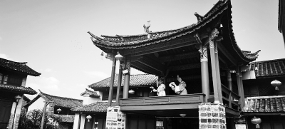 晚饭后在四方街古戏楼看戏,戏楼为鲁史街乡绅甘遇春于1929年带头捐资建成,落成时曾邀请滇戏“玉和帮”首演,观众上千人,连续演唱数十场,可见当时戏曲之盛。