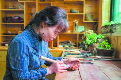 凭借对这项手艺的热爱和新时代女性的闯劲、韧性,陈青华在这个领域闯出一番天地,并在2023年获得了浙江省乡村工匠名师称号、浙江省高级工艺美术师职务任职资格,她的作品获得国家级铜奖1项、省级金奖2项。