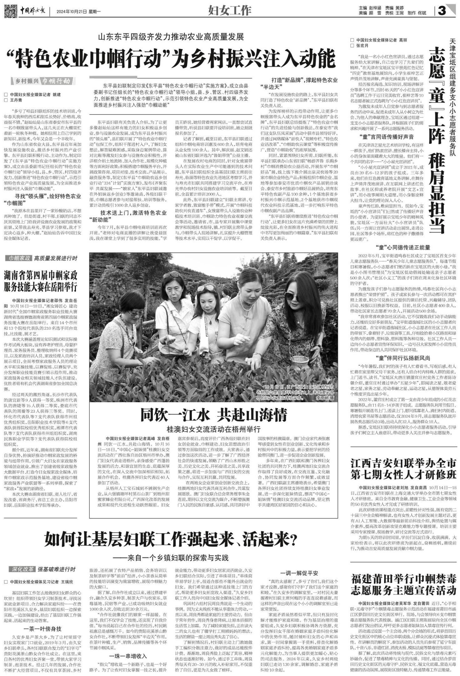 《中国妇女报》(电子版)的一切内容(包括但不限于文字、图片、PDF、图表、标志、标识、商标、版面设计、专栏目录与名称、内容分类标准以及为读者提供的任何信息)仅供中国妇女报读者阅读、学习研究使用,未经中国妇女报及/或相关权利人书面授权,任何单位及个人不得将《中国妇女报》(电子版)所登载、发布的内容用于商业性目的,包括但不限于转载、复制、发行、制作光盘、数据库、触摸展示等行为方式,或将之在非本站所属的服务器上作镜像。否则,中国妇女报将采取包括但不限于网上公示、向有关部门举报、诉讼等一切合法手段,追究侵权者的法律责任。