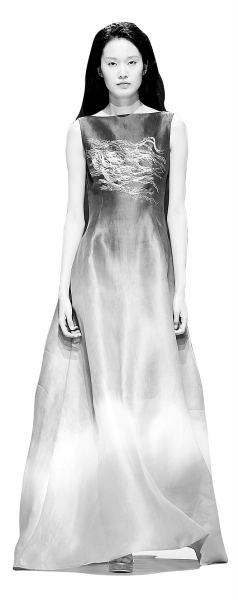 9月24日,我带着30套“最中国”的礼服亮相巴黎时装周。“黄河奔腾”“长江滋养”“澜沧江博大”“夜与昼融合”四个系列以我国自然景观为灵感,通过传统天然彩色植物染技艺,牦牛绒与羊毛毡、真丝网纱、绡等材料创新融合,表现了生命流动中的变幻莫测的节奏与动感。