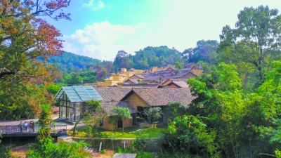 到“来屋头玩”乡村美学生活馆点上一壶密蒙花茶,来自贵州的游客沈静和朋友,在生活馆附近的金丝榔古树树荫下找上一个舒服的位子,一边聊天一边品茶,一待就是一下午。