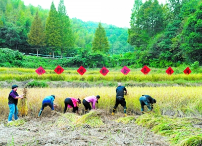 10月25日,村民在田间参加割稻比赛。当日,一场别开生面的农民运动会在浙江省诸暨市浬浦镇举办,村民在金色的稻田间进行割稻、拔河、玉米消消乐等比赛,尽享丰收喜悦。新华社记者 翁忻旸/摄