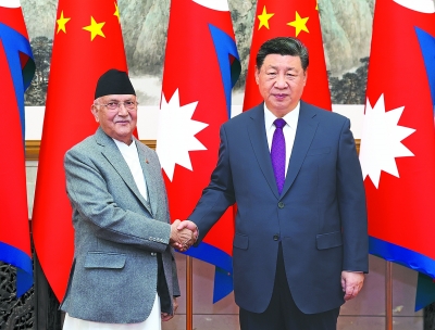 习近平赞赏奥利长期坚定致力于中尼友好事业,指出中国和尼泊尔是山水相连的好邻居、好朋友、好伙伴,两国始终真诚相待、相互尊重、相互支持,双边关系保持健康稳定发展。明年是中尼建交70周年。中方把中尼关系置于周边外交的重要位置,愿同尼方秉持建交初心,巩固传统友谊,推动中尼面向发展与繁荣的世代友好的战略合作伙伴关系取得新的更大发展。