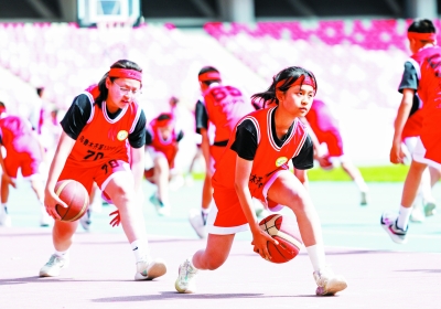 4月27日,学生在开幕式上参加三大球表演《奔跑吧,少年》。 当日,新疆乌鲁木齐市第55届中学生田径运动会在乌鲁木齐奥体中心运动场开幕。本次比赛为期4天,来自101所中学的近2000名运动员参加。 新华社记者 王菲/摄