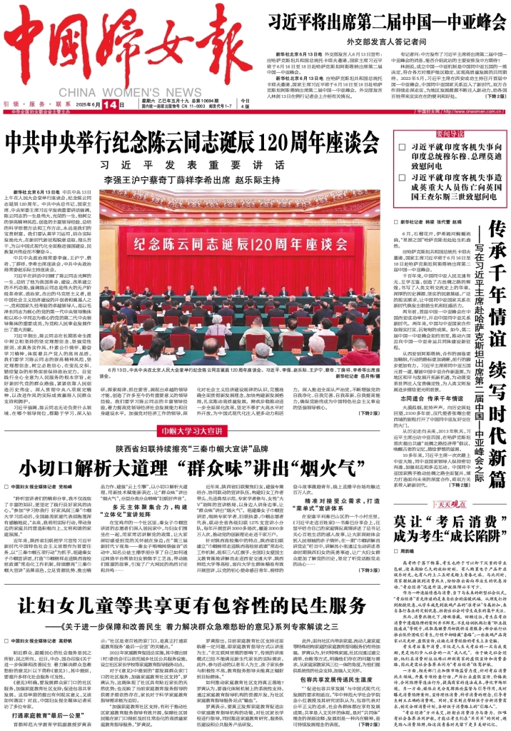 中国妇女报要闻 1让妇女儿童等共享更有包容性的民生服务 □ 中国妇女报全媒体记者 高舒帆2025-06-14 2 2025年06月14日 星期六