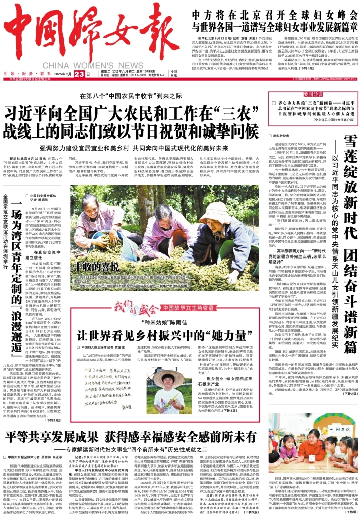 中国妇女报要闻 1平等共享发展成果 获得感幸福感安全感前所未有 2025-09-23 2 2025年09月23日 星期二