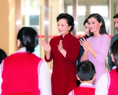 新华社北京11月12日电(记者 温馨 冯歆然) 11月12日上午,国家主席习近平夫人彭丽媛和陪同西班牙国王费利佩六世来华进行国事访问的王后莱蒂西娅参观北京市残疾人服务示范中心。