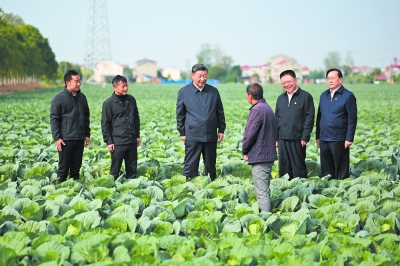 5日上午,习近平前往咸宁市嘉鱼县,首先到潘家湾镇十里蔬菜长廊考察。深秋时节,这里仍然满目青翠、生机勃勃。习近平走进田间,察看蔬菜长势,详细询问蔬菜品种、种植技术、销售等情况。他强调,农村天地广阔,农业大有可为。发展现代农业,建设农业强国,必须依靠科技进步,让科技为农业现代化插上腾飞的翅膀。他勉励当地干部群众走科技之路、质量之路、品牌之路,把蔬菜种植这个富民产业进一步做好,让更多群众增收致富。