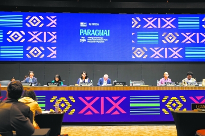 这是12月4日在巴拉圭亚松森拍摄的联合国教科文组织保护非物质文化遗产政府间委员会第19届常会评审现场。 联合国教科文组织保护非物质文化遗产政府间委员会第19届常会4日通过评审,决定将“春节——中国人庆祝传统新年的社会实践”列入人类非物质文化遗产代表作名录。 新华社记者 朱雨博/摄