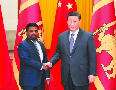 一月十五日下午,国家主席习近平在北京人民大会堂同来华进行国事访问的斯里兰卡总统迪萨纳亚克举行会谈。这是习近平同迪萨纳亚克握手。 新华社记者 丁林/摄