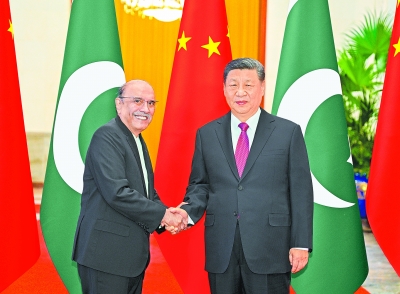 习近平指出,中国和巴基斯坦是铁杆朋友和全天候战略合作伙伴。历久弥坚的中巴传统友谊由两国老一辈领导人亲手缔造,是两国和两国人民的宝贵财富。近年来,双方坚定相互政治支持,保持密切高层交往,深入推进中巴经济走廊建设和各领域合作,树立了国与国关系典范。中方愿同巴方在各自现代化道路上携手前行,加快构建新时代更加紧密的中巴命运共同体,更好造福两国人民,为地区和平、稳定、繁荣作出更大贡献。