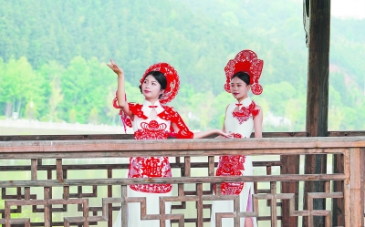 4月18日,演员在展示传统剪纸。 当日,“闽韵风华”文化大观园系列展演活动在福建省南平市建阳区“武夷梦华录”景区上演。该活动展示了福建多元丰富的非遗和地方传统民俗,依托沉浸式表演和互动性体验,观众可多感官感受闽派文化的千年风韵。 新华社发(蒋巧玲/摄)