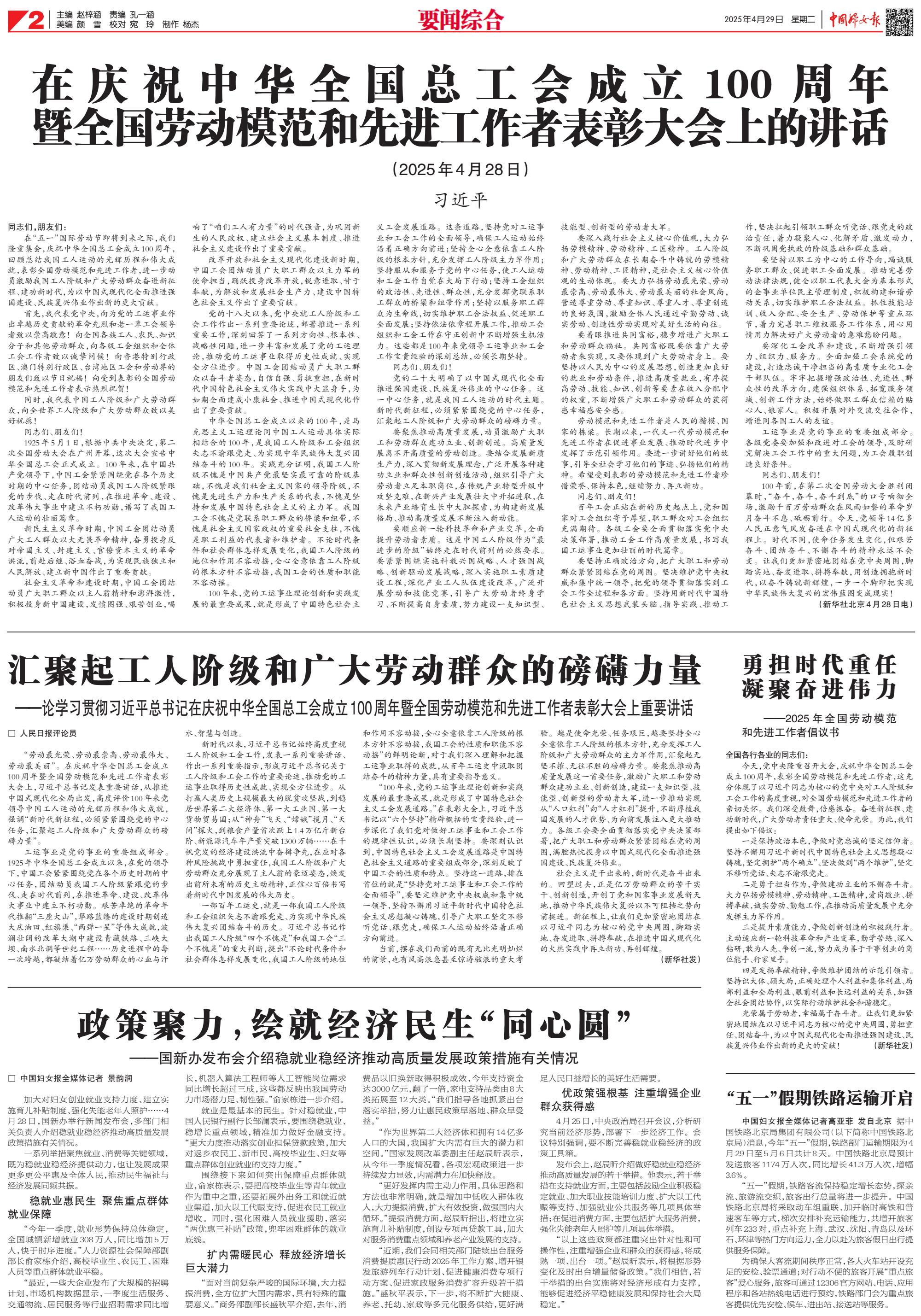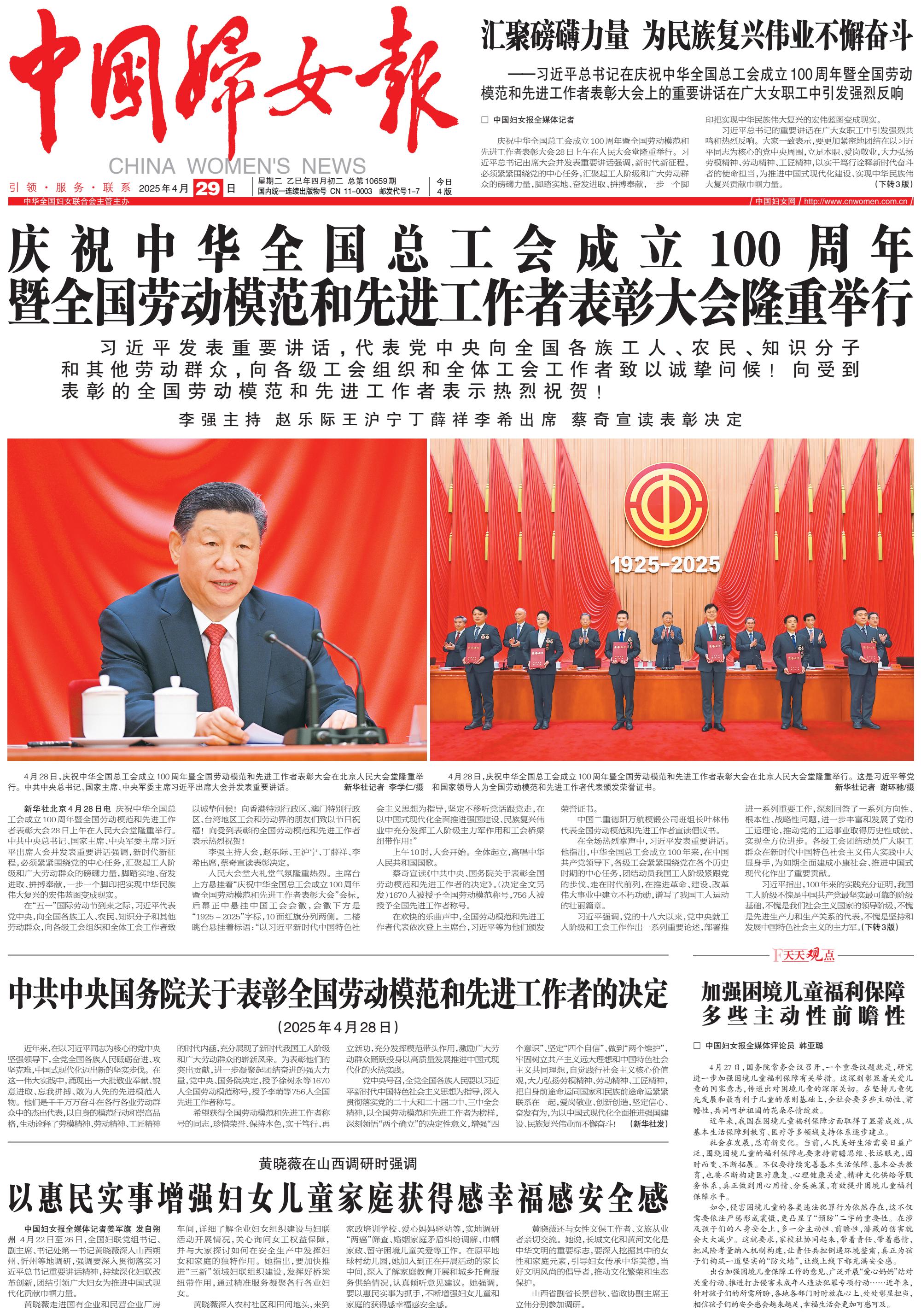 庆祝中华全国总工会成立100周年暨全国劳动模范和先进工作者表彰大会隆重举行