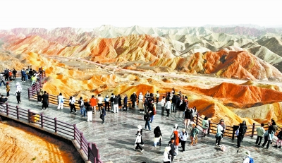 5月4日,游客在位于甘肃省张掖市的七彩丹霞景区游览。文化和旅游部5月6日公布2025年“五一”假期文化和旅游市场情况。经文化和旅游部数据中心测算,假期5天,全国国内出游3.14亿人次,同比增长6.4%;国内游客出游总花费1802.69亿元,同比增长8.0%。