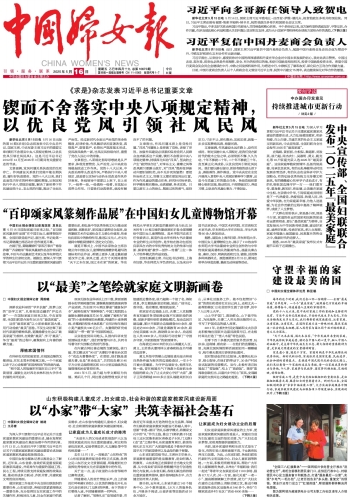 妇女是家庭家教家风建设的主力军,更是家庭家教家风建设的受益人。家庭应当成为妇女建功立业的坚实后盾,为广大妇女追求梦想、实现理想提供温暖助力。